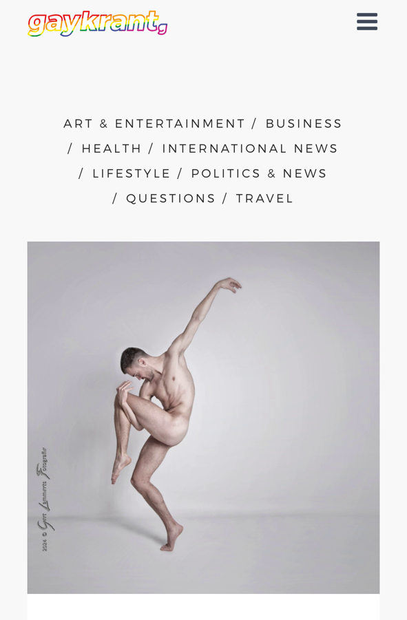 “Flexibiliteit in de breedste zin van het woord is een kenmerk van de fotografie van Gert Lammerts. Deze uit zich niet alleen in de veelzijdigheid van zijn thema’s en onderwerpen (dieren, concerten, klapstoeltjes), maar ook steeds meer in de bijna onmogelijk lijkende houdingen van zijn modellen. Vaak zijn ze geïnspireerd door de beeldhouwwerken van Rodin en Michelangelo. Je kunt Gert typeren als een klassiek beeldhouwer van ‘verdraaid’ interessant artistiek naakt.”